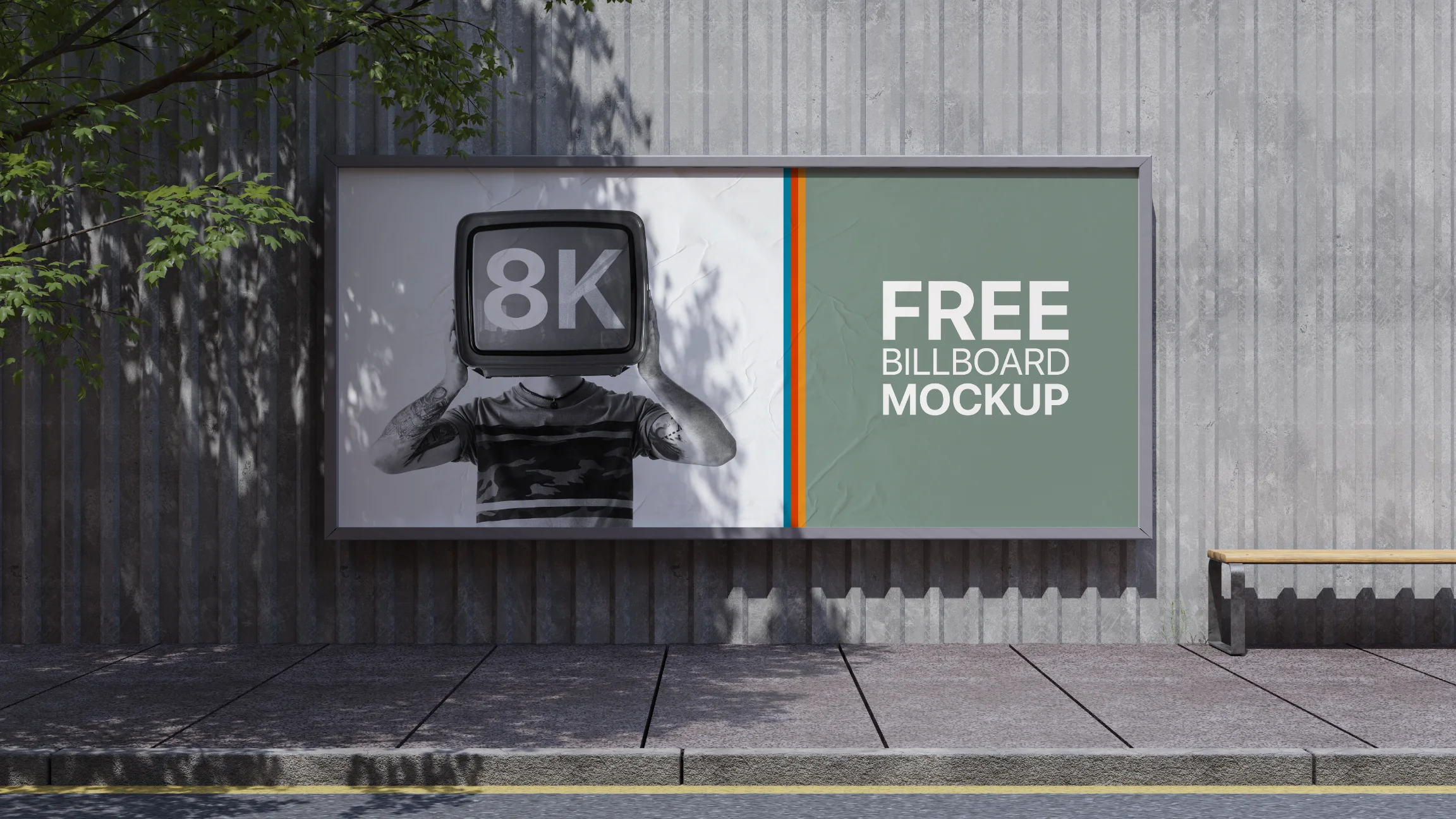 Free Wide Street Billboard Mockup